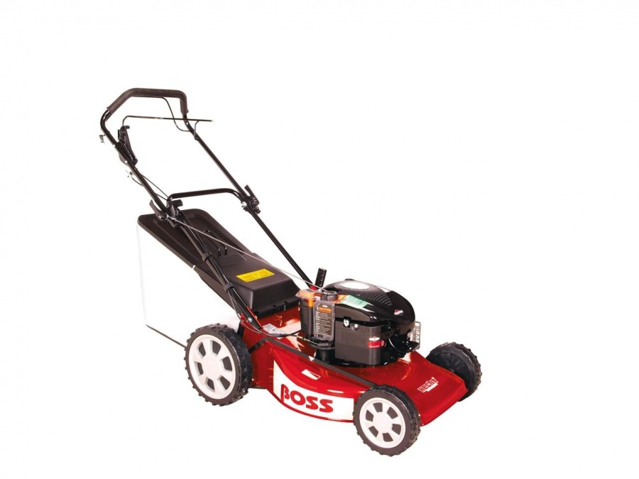Benzínová sekačka s pojezdem . Výkon 6 HP. Záběr 53 cm. Koš 70 l. Hmotnost 35 kg. Automatický startér.